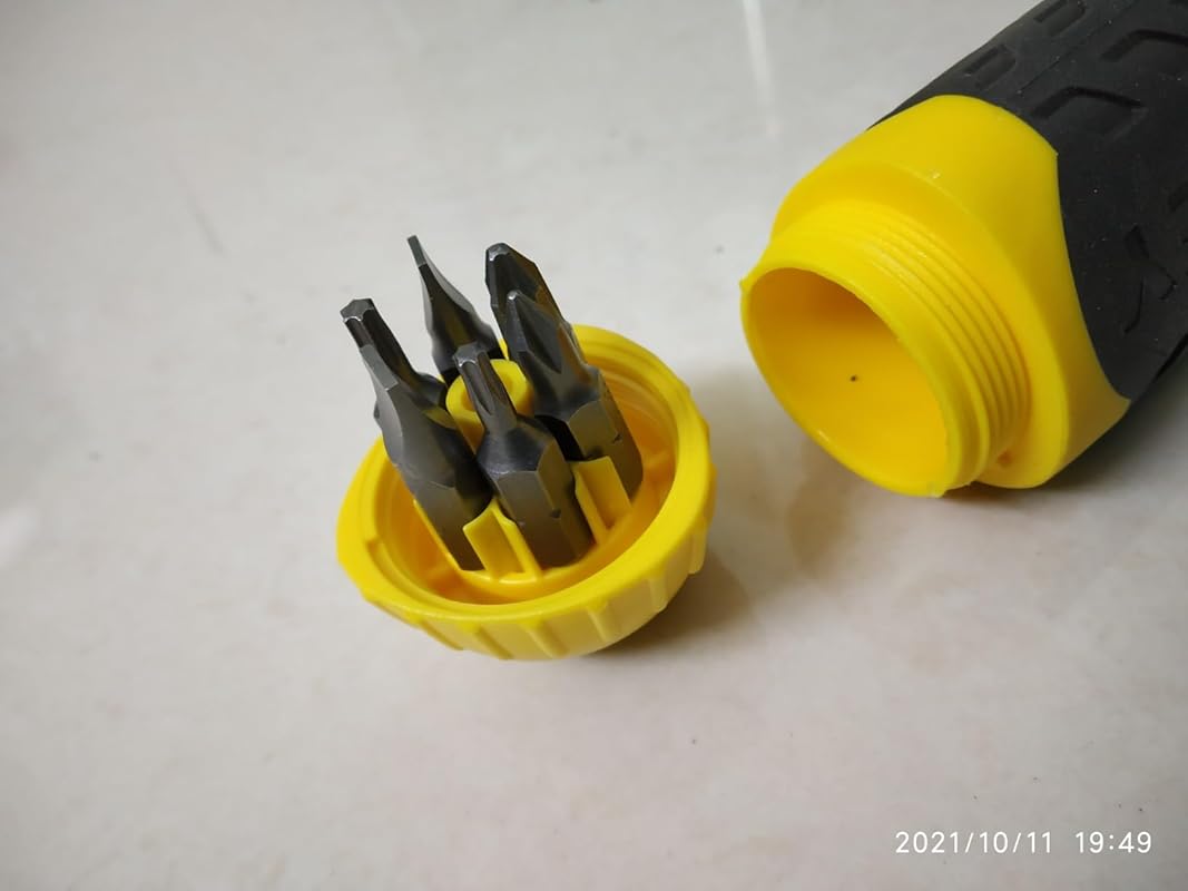 The screwdriver is made from sturdy material. The magnet is strong and holds the bits properly. It can be used both as a rechet screwdriver and also a normal screwdriver. All the included 10 bits fits within the screwdriver which makes it portable. Haven’t faced any bending issues till now. The weight is a bit heavy but you won’t feel it. Proper packaging and on time delivery.