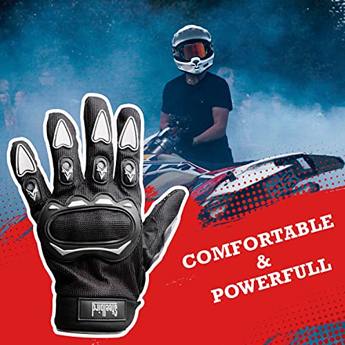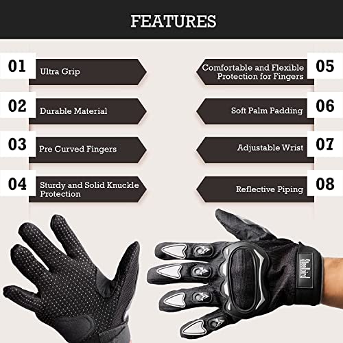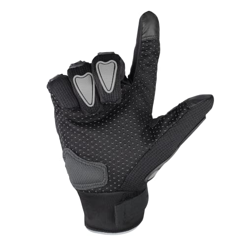 Steelbird Full Finger Bike Riding Gloves with Touch Screen Sensitivity at Thumb and Index Finger, Protective Off-Road Motorbike Racing (Large, Black Grey)(Polyester, Cycling)