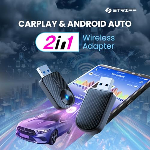 STRIFF 2-in-1 Wireless Carplay Receiver, Converts Wired Android Auto & CarPlay to Wireless, USB A & Type C, Note Only for Already OEM Installed Android Auto/Carplay, Bluetooth V5.4 (Black) :