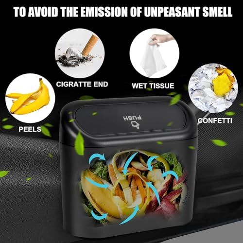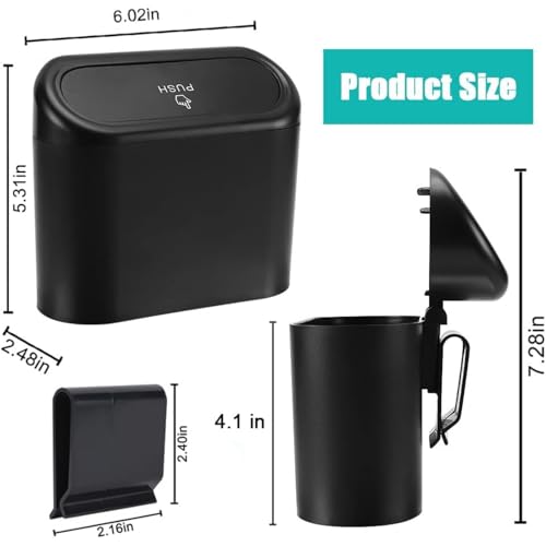 TASMAX car mini car dustbin accessories for Car Trash Bin Can Holder Dustbin Hanging Black Automotive Garbage Can Bin Trash Container for Auto Cars, Dust Bin, Home, Office,(Black Pac for 1)