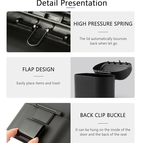 Feature | (CAR TRASH BIN) Can with Lid This is a convenient and practical car trash can with lid . The lid can automatically rebound. It can keep your car clean and orderly without taking up other space. It can be hung on the door or on the back of the chair. (dustbins all tep cars car dustbin car accessories for dashboard dustbin for office) |