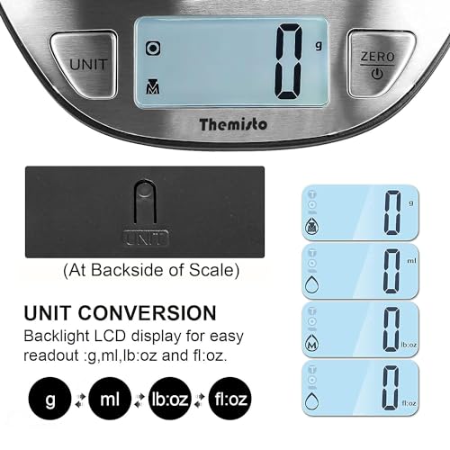 Themisto TH-WS20 Digital Kitchen Weighing Scale Stainless Steel (5Kg)