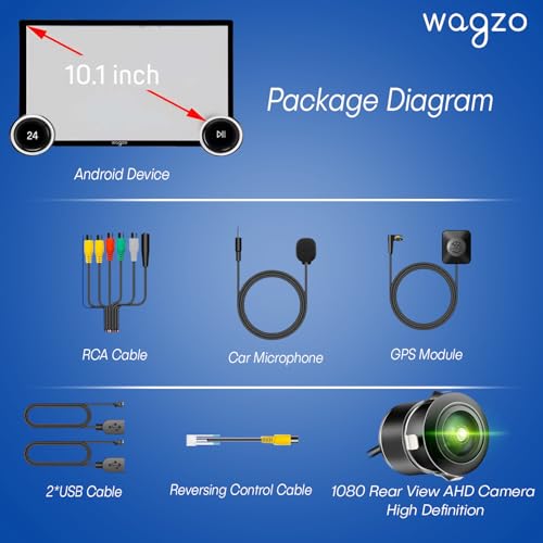 Wagzo Diamond 2K Car Android System Touch Screen 4GB+64GB|4 Core|Wireless Carplay Adapter & Android Auto | Car Stereo |Universal All Cars| Including AHD Rear View Camera| 1+1 Years Warranty