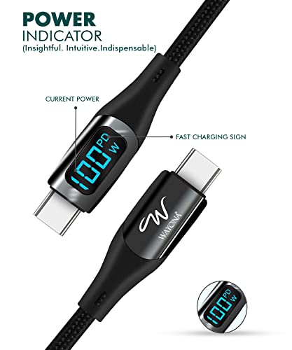 Wayona USB C to USB C 100W LED Power Display Type C to C Fast Charging Cable for Iphone 17,16 Pro, Pro Max, iPhone 15 Pro,Macbook, Laptops, Samsung Galaxy Ultra S25 /S24,Google Pixel (1.5M, Black)