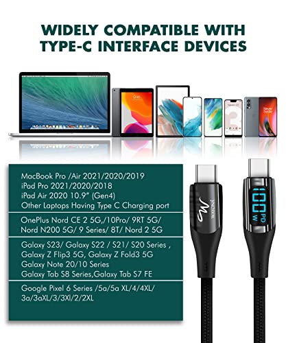 • 100W Fast Charging/ PD Cable : Wayona LED Display USB C to USB C fast charging cable with E-marker chip supports charging speeds up to 100W/5A PD with a maximum charging power. Which can charge most of the Types C devices and many more.