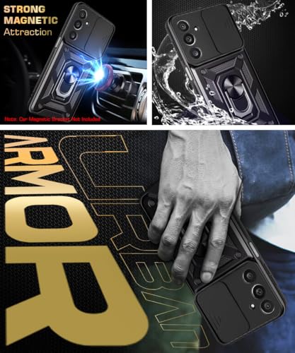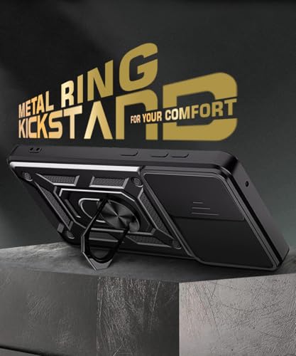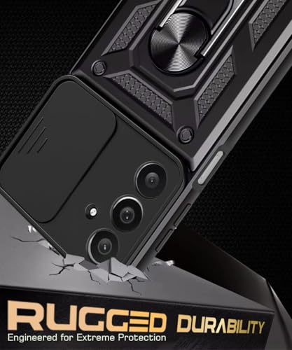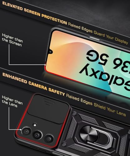 WOW IMAGINE Tough Armor Bumper Mobile Back Case for Samsung Galaxy M36 5G | Galaxy F36 5G Sliding Camera Cover | Shock Proof 360° Protection | Hybrid PC + TPU | Ring Holder with Kickstand – Black