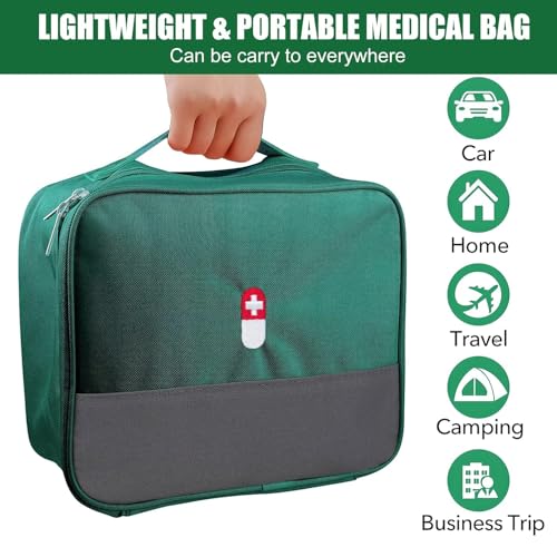 • Great Medical Kit: 1 x Green first aid bag & 1 x pouch, empty bags included only. Two emergency bags meet different daily needs, safely bring all medications with you outdoors or indoors.